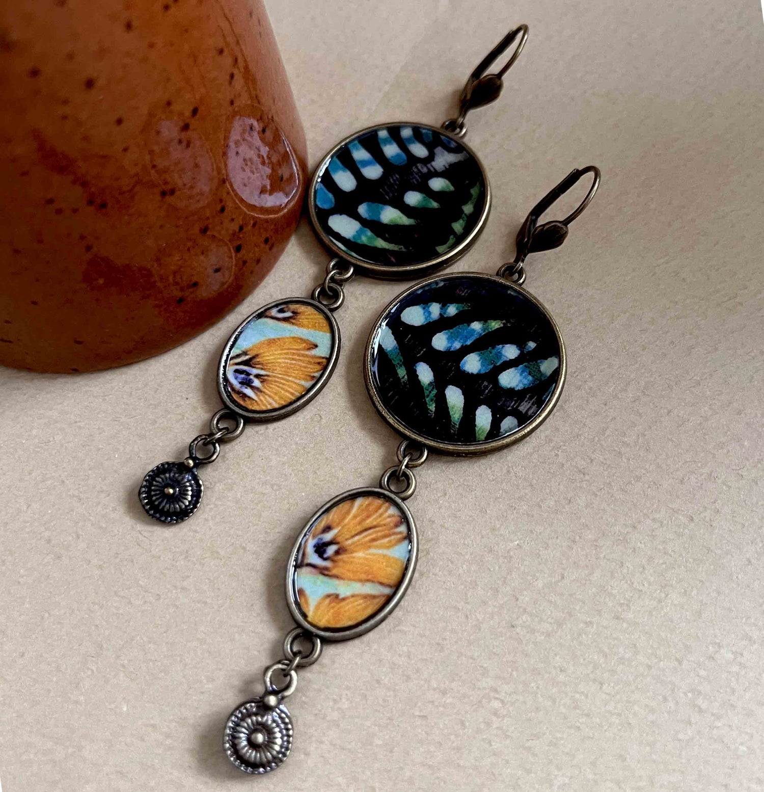 Explorez la gamme de boucles d'oreilles faites main, alliant fantaisie et élégance. Inspirées par un mélange d'influences ethniques et d'art déco, mes créations se distinguent par leurs motifs uniques et leurs couleurs harmonieuses. Chaque paire est conçue avec soin dans mon atelier breton, garantissant une qualité artisanale et un style raffiné qui complétera parfaitement votre tenue.