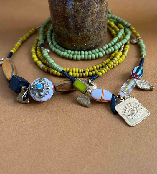 Ajoutez une touche distinctive à votre style avec les broches artisanales, fabriquées dans mon atelier à Vannes, en Bretagne. Chaque broche est le fruit d'un travail minutieux, mêlant des influences ethniques et des éléments d'art déco pour créer des pièces uniques. Portez les broches pour exprimer votre personnalité et apporter une note d'originalité à vos ensembles vestimentaires.
